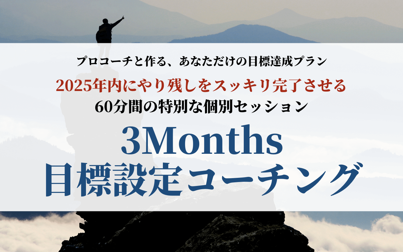 「3Months目標設定コーチング」は、あなたが2025年内に達成したい目標を明確にし、行動に移すための特別な60分間の1on1セッション※です。